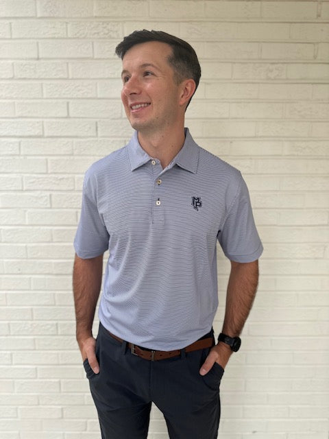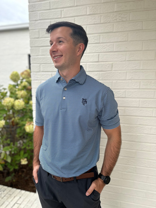 Men's Peter Millar Hales Performance Polo Stripe - Navy/Cottage Blue